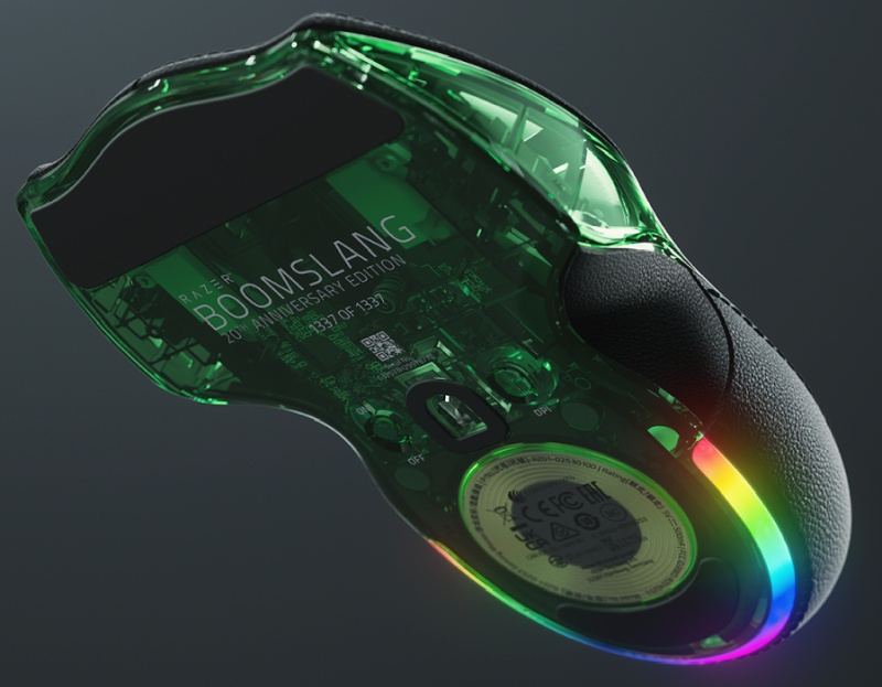 Теперь мышь Boomslang возвращается в юбилейном издании, посвящённом 20-летию компании, — обновлённая с использованием передовых технологий для современной игровой эпохи, но при этом отдающая дань уважения дизайну и духу, с которых все началось. Всего 1337 уникальных экземпляров этой мыши с уникальным серийным номером будут доступны по всему миру. Поклонникам предлагается поделиться историями о Boomslang на предстоящих мероприятиях сообщества Razer и получить шанс выиграть эксклюзивные памятные предметы, включая специальный экземпляр № 1337 с автографом главы Razer.